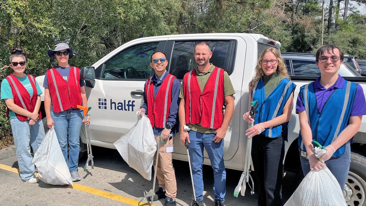 The Woodlands office supported Adopt‑A‑Path by volunteering for a community path cleanup.